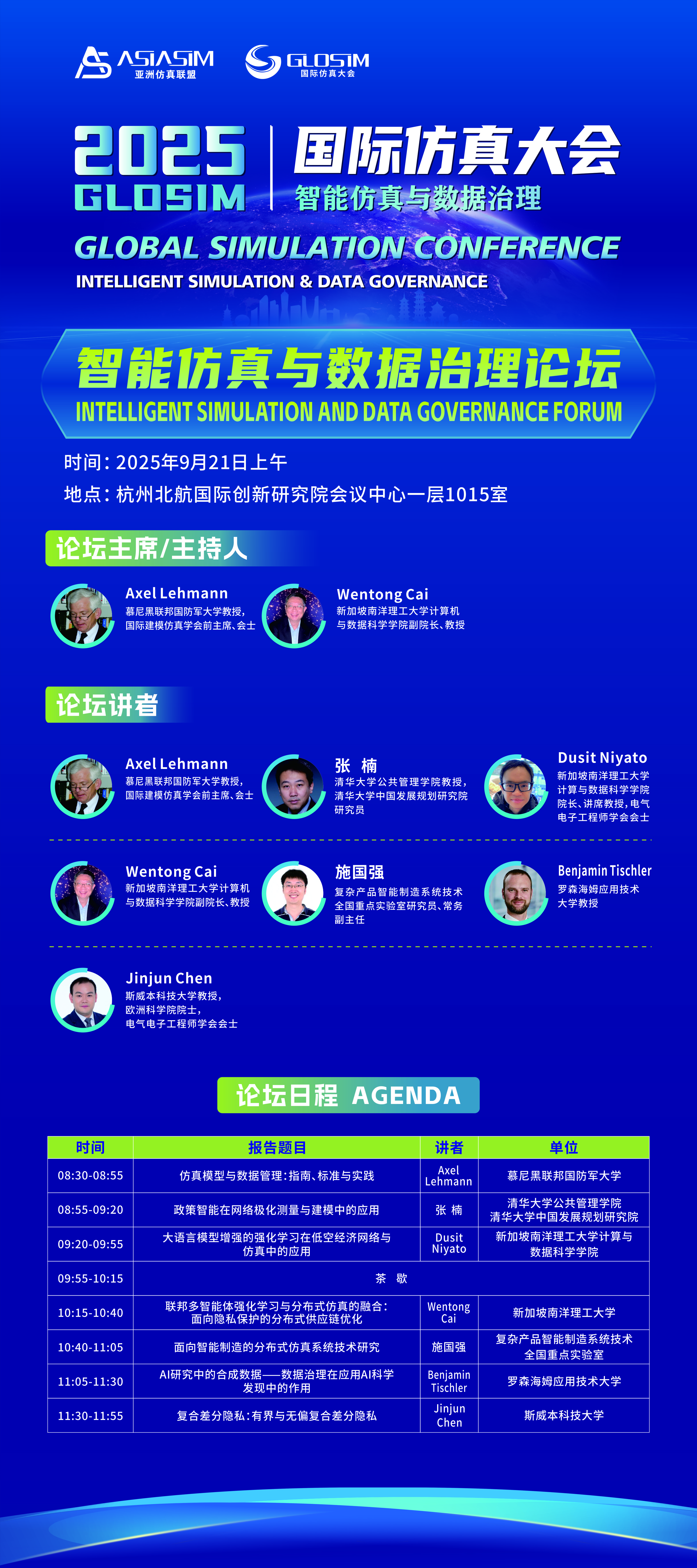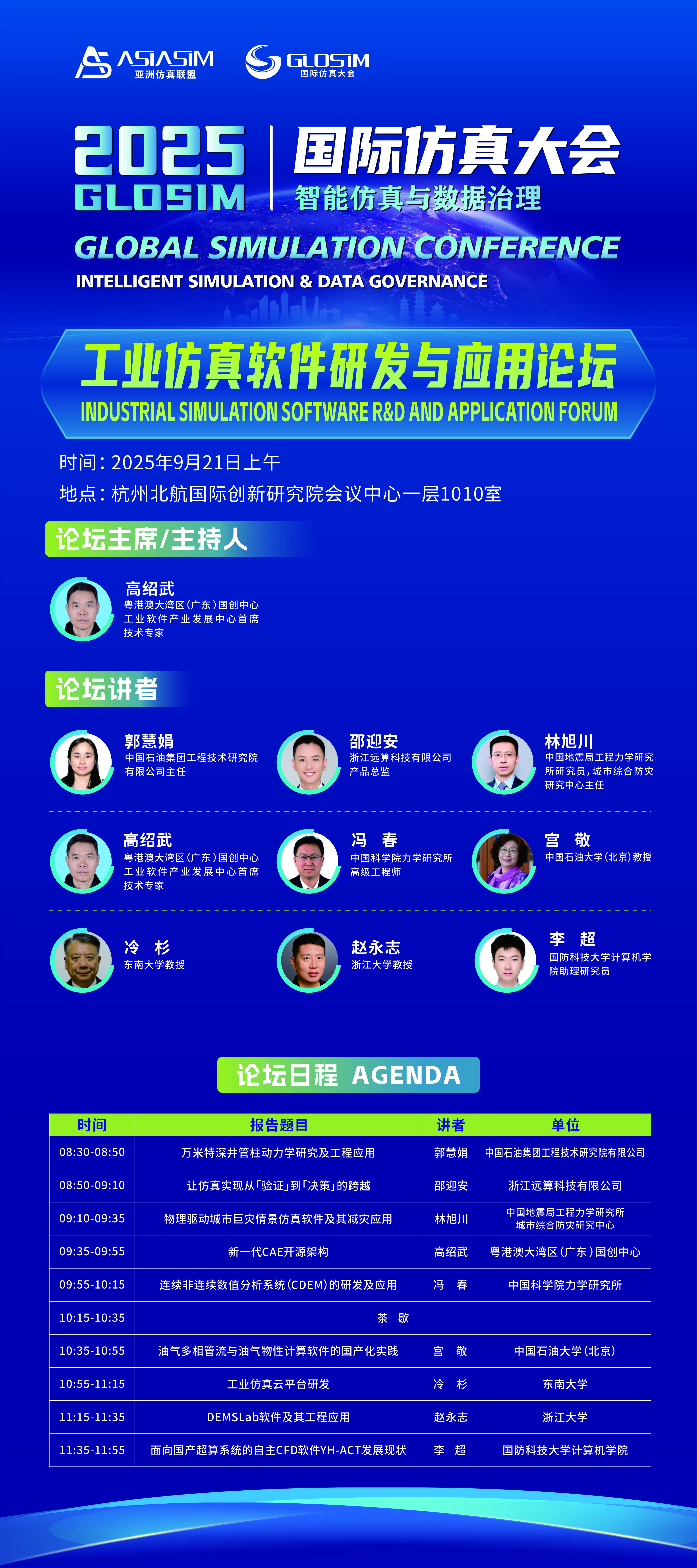 本次会议由亚洲仿真联盟主办,中国仿真学会、日本仿真学会、韩国仿真学会、新加坡仿真学会、马来西亚仿真学会、国际建模与仿真学会、欧洲仿真联盟、杭州市北京航空航天大学国际创新研究院等多家国内外科技组织、高校、重点实验室和仿真领域头部科技企业协办。会议以“智能仿真与数据治理”为主题,设一个主论坛、十四个特色主题分论坛。主论坛邀请诺贝尔奖、图灵奖获得者和多位国内外仿真领域院士专家作主旨报告。分论坛聚焦“仿真+AI”、“工业大模型与具身智能”、“生命科学与医疗健康”、“航空航天与低空经济”、“智能制造与机器人”、“科学计算与仿真”、“电子设计与仿真”等众多领域,会议还将面向全球发布《建模仿真塑造世界数字化杭州宣言》,同期邀请多家仿真科技企业展示最新新成果、推介新技术。亚洲仿真联盟始终秉持 “开放、创新、协同、包容、共赢” 的可持续发展理念,致力于促进全球仿真科技进步,肩负科技外交使命,构建高质量国际交流平台。